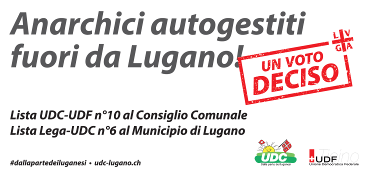 Nell’ambito della legalità, per contro, l’UDC continuerà a battersi affinché essa venga ristabilita in Città, anche nell’ambito della “cultura alternativa”. Nessuno è al di sopra della legge, nemmeno un manipolo di estremisti anarchici autogestiti. Questo tipo di autogestione non dovrà più avere spazio a Lugano!