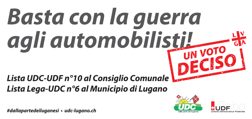 La viabilità cittadina necessita di soluzioni pragmatiche e immediate che diluiscano il traffico, non di aleatori progetti ideologici. Mobilità privata, pubblica e lenta possono e devono svilupparsi a Lugano senza che ai cittadini venga imposta l’una o l’altra. La libertà di scelta dei luganesi su come muoversi in città non va assolutamente limitata. È quindi giunto il momento di dire BASTA alla guerra agli automobilisti in atto ormai da tempo in Città.
